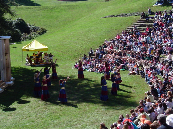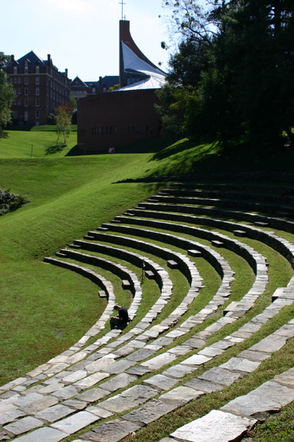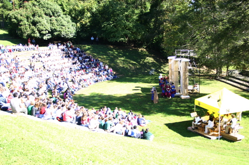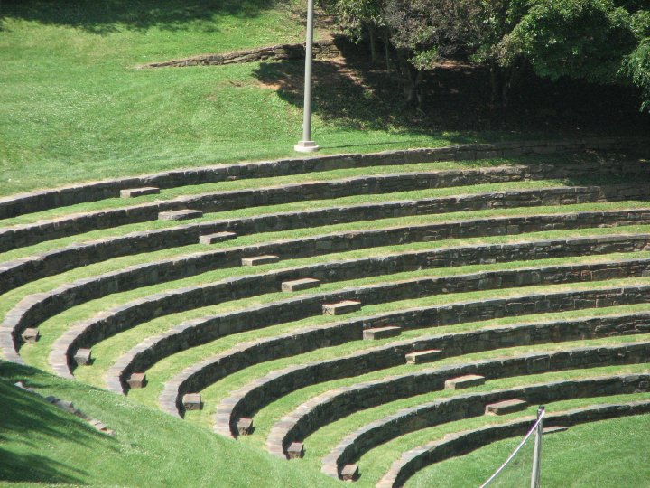 The Mabel K. Whiteside Greek Theatre, known on the Randolph College campus as The Dell, is named in honor of the woman who founded the Greek Play tradition in 1909. The area was cleared in 1920 (for a pageant entitled “Scenes from the Education of Women in the South”), and Miss Mabel’s unprecedented series of productions inspired the classes of ’38 and ’39 to build a stage building, which was completed in 1940. In honor of her memory friends and admirers built and dedicated the seats in 1965.